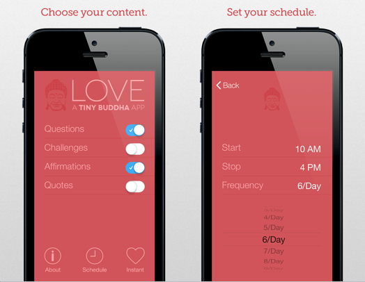 LOVE by Tiny Buddha offers daily quotes, affirmations, challenges, and questions to help you give and receive more love.