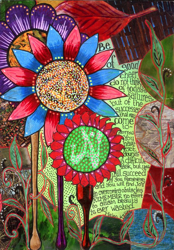 Janette has been art journaling for a few years and it has changed her life. She didn’t want to write about her life in her journals so she used positive quotes instead. Incorporating positive messages into her art has helped her to become a more positive and confident person. Visit her at ajsartjournal.wordpress.com/