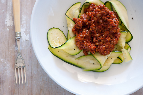 The zucchini noodles are sooo good. Much better than boring old pasta. And I actually prefer the lentils to beef these days. Enjoy!
