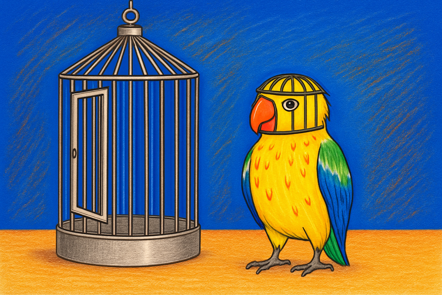 I once saw a postcard with the drawing of a parrot walking out of its birdcage, while wearing a small birdcage like a helmet around its head. The words on the card said, “Being free isn’t actually that easy.” I think it summarizes very well how I was trapped trying to be free.