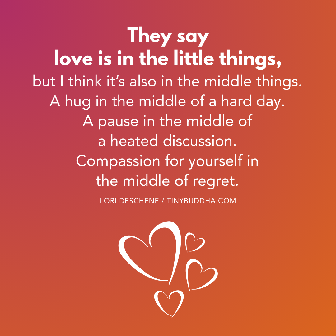 Lori Deschene is the founder of Tiny Buddha. She started the site after struggling with depression, bulimia, c-PTSD, and toxic shame so she could recycle her former pain into something useful and inspire others to do the same. You can find her books, including Tiny Buddha’s Gratitude Journal and Tiny Buddha’s Worry Journal, here and learn more about her eCourse, Recreate Your Life Story, if you’re ready to transform your life and become the person you want to be.